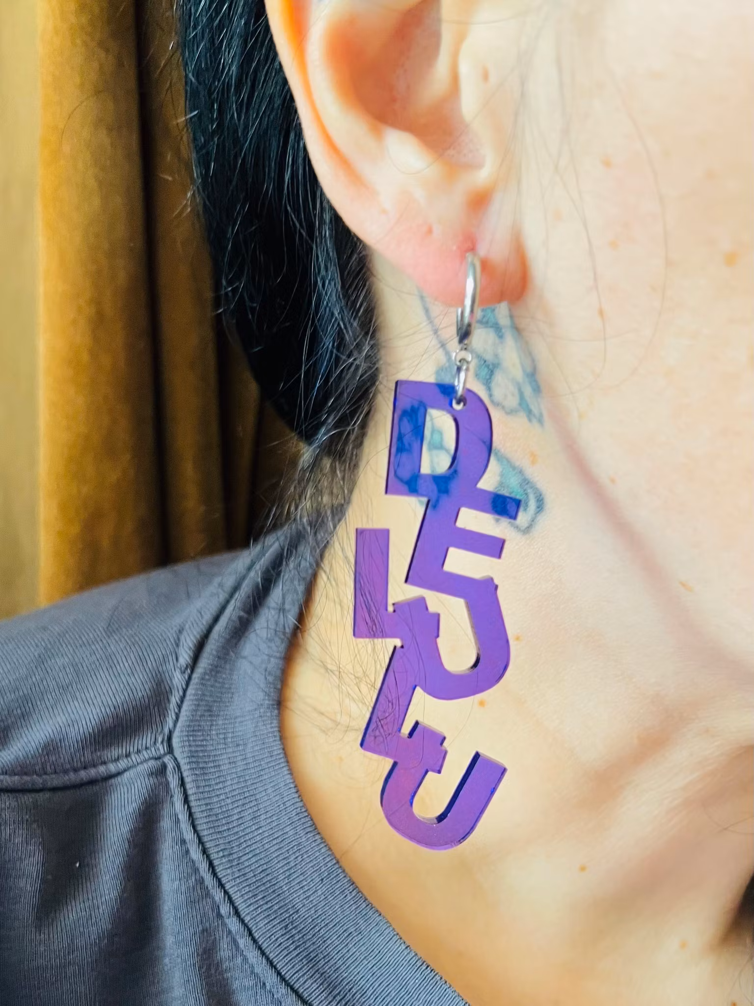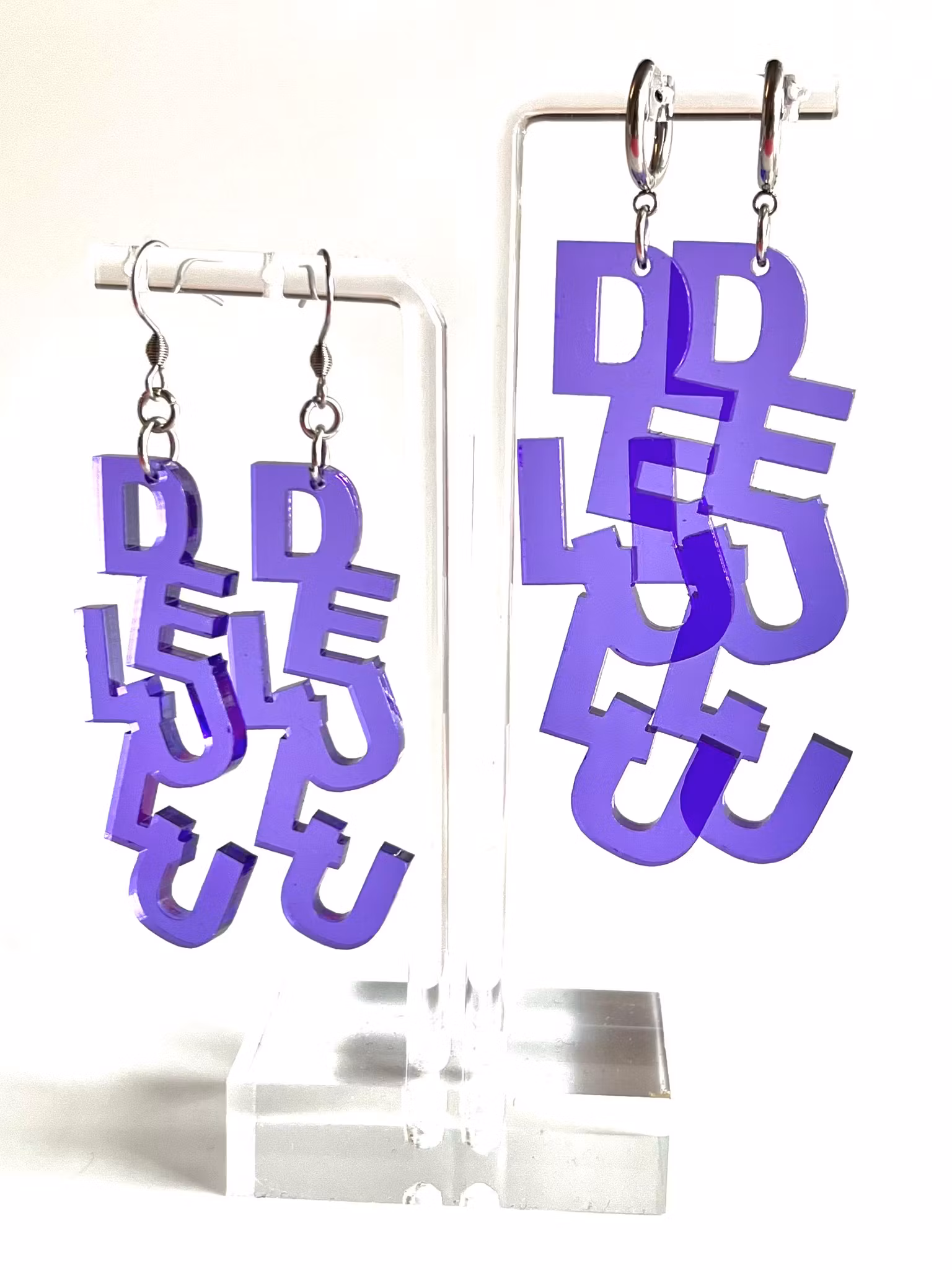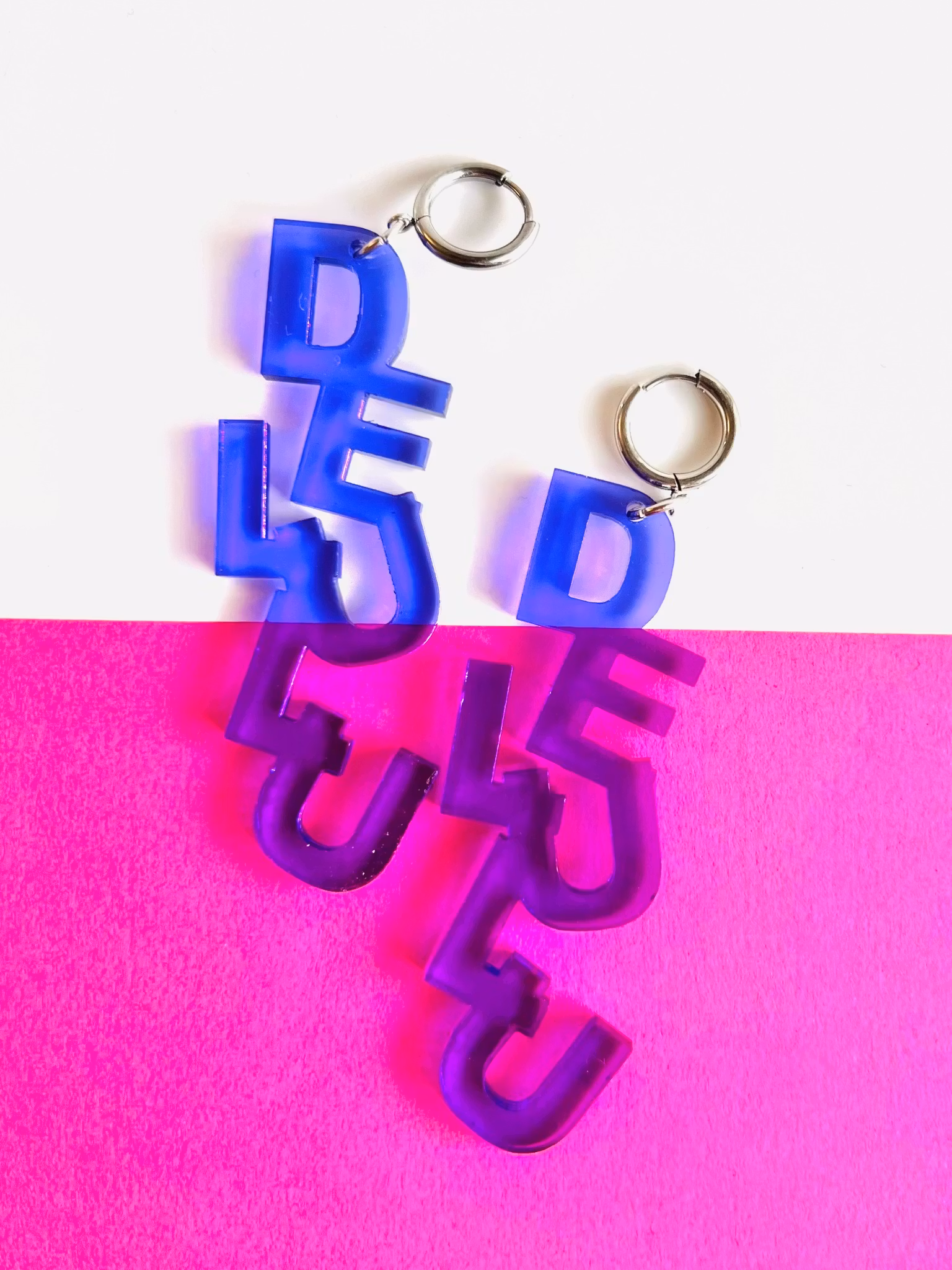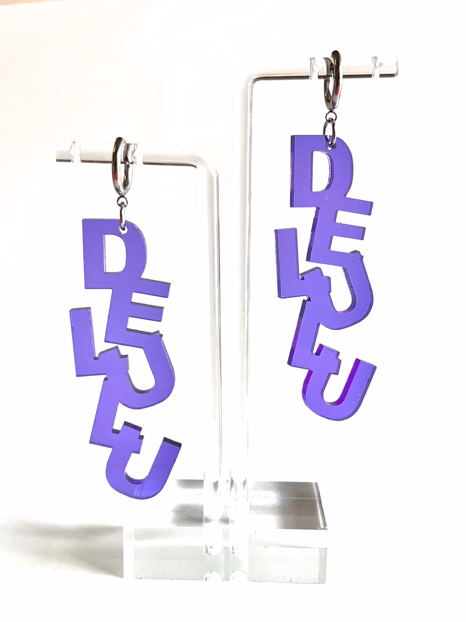 Unika och handgjorda örhängen i akryl. Dessa örhängen är lättviktiga och de monteras för hand av olika laserskurna delar för att bilda en helhet. Ett smycke för den som söker något speciellt och småskaligt! De mäter 6,5 cm.