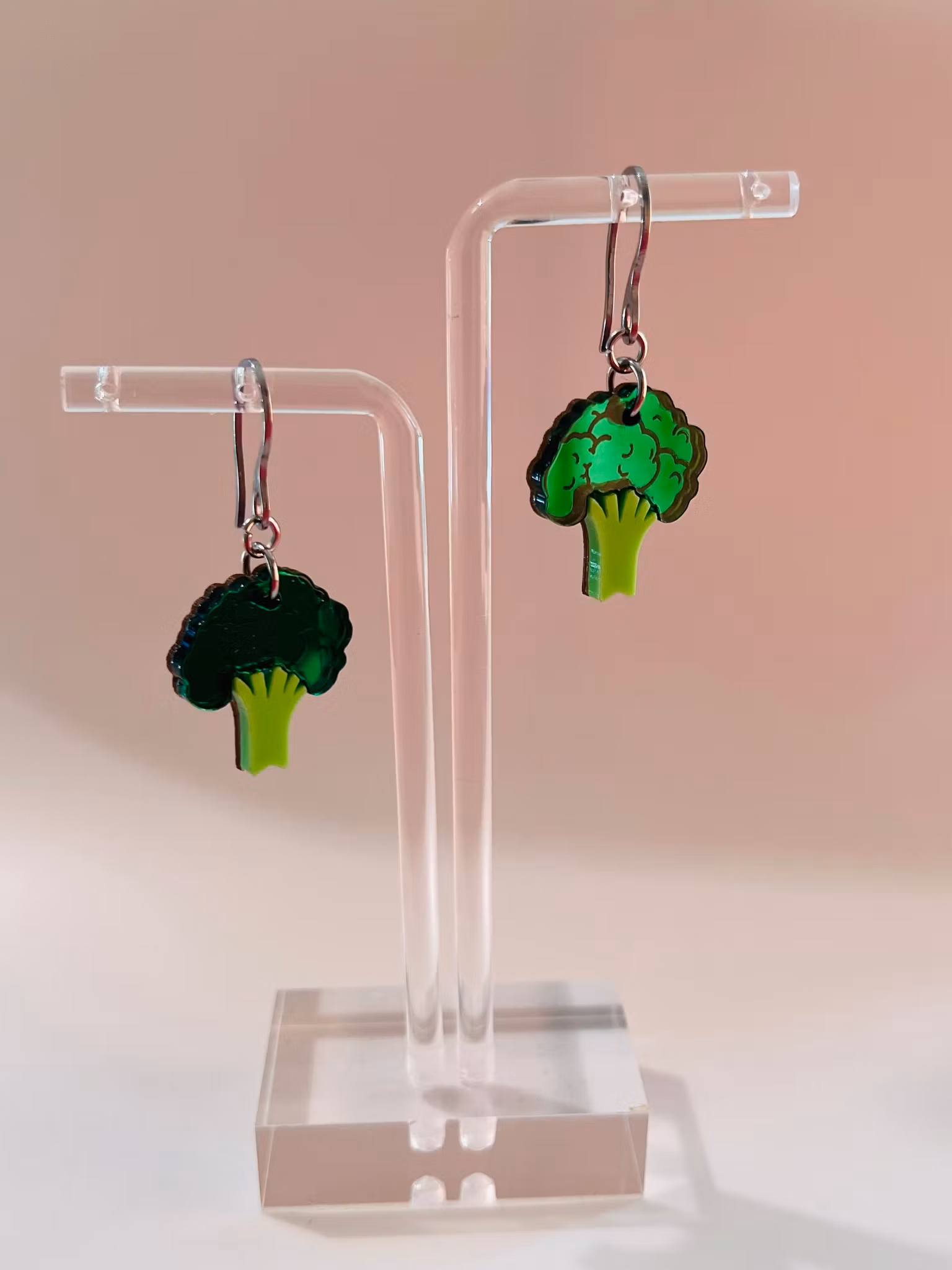 Unika och handgjorda örhängen i handmålad akryl, förstärkta på baksidan. Dessa örhängen är lättviktiga och otroligt vackra men svårfotade. De monteras för hand av olika laserskurna delar för att bilda en helhet. Ett smycke för den som söker något speciellt och småskaligt! De mäter 2,5 cm.