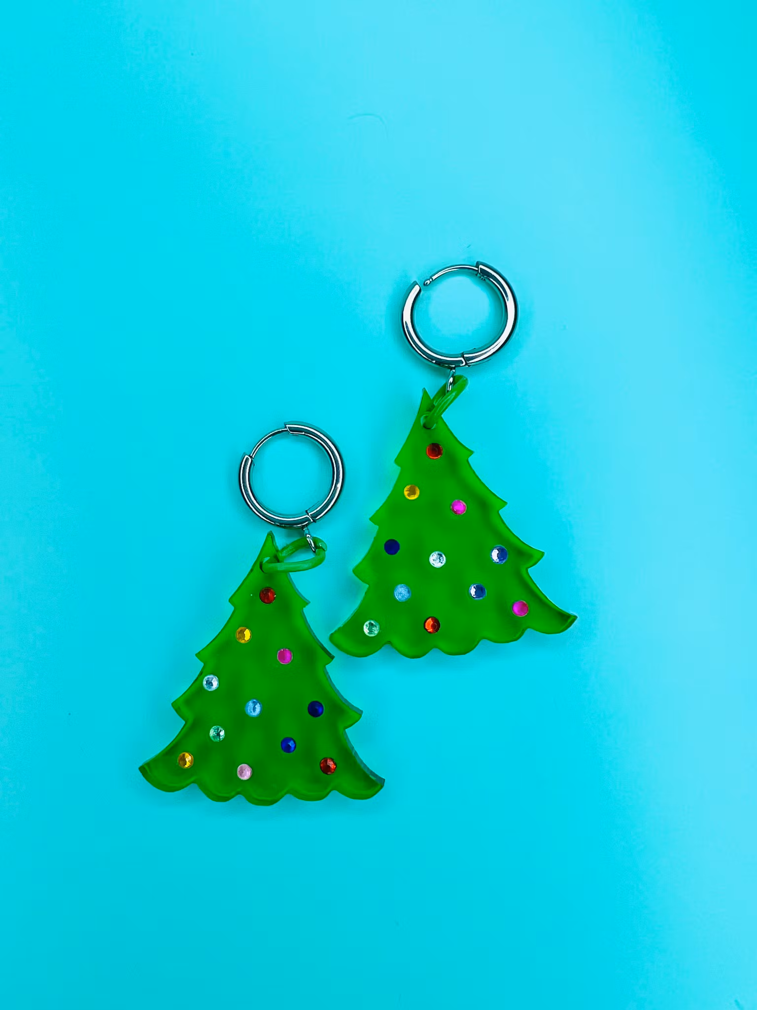 Unika och handgjorda örhängen i transparent akryl med små gnistrande stenar fastsatta en och en för hand. Dessa örhängen är lättviktiga och otroligt vackra men svårfotade då det är transparent akryl - de är ännu vackrare i verkligheten! De monteras för hand av olika laserskurna delar för att bilda en helhet. Ett smycke för den som söker något speciellt och småskaligt! De mäter 3,3 cm. Kommer på krokar, går att byta till clicker hoops.