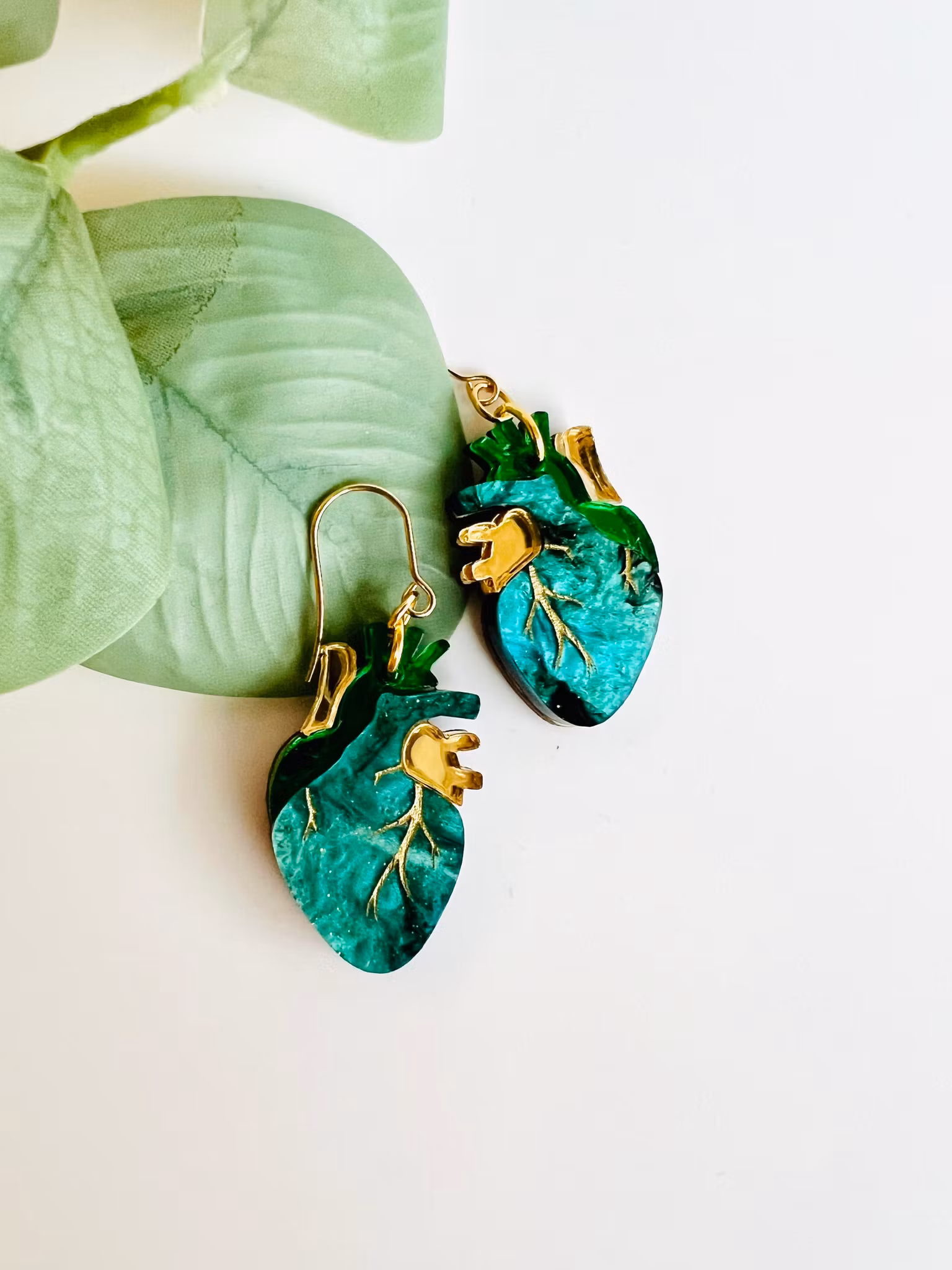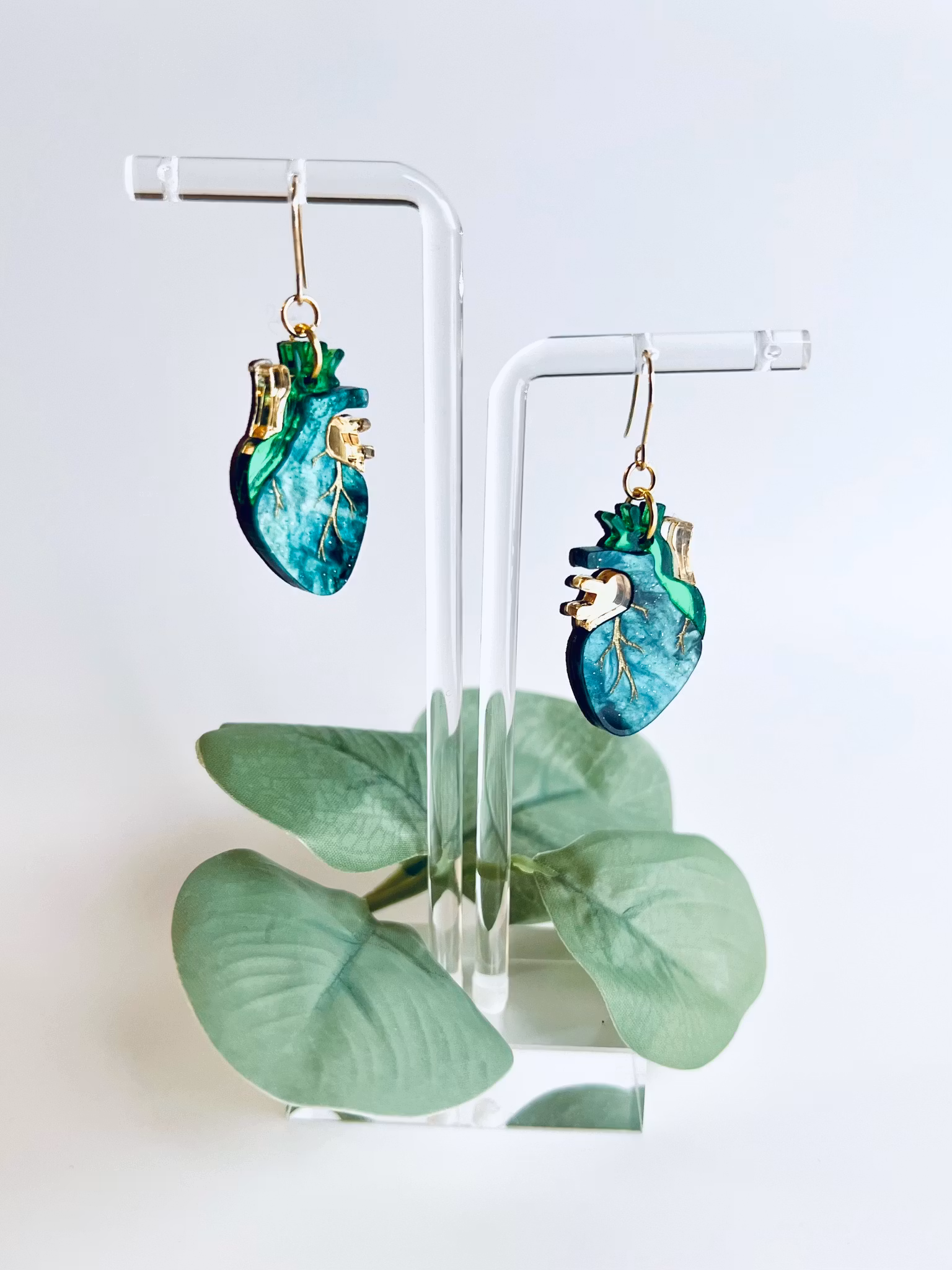 Unika och handgjorda örhängen i akryl med handmålade detaljer och detaljer i spegelakryl, förstärkta på baksidan med vackert mörk trä. Dessa örhängen är lättviktiga och otroligt vackra men svårfotade då det är just spegelakryl - de är ännu vackrare i verkligheten! De monteras för hand av olika laserskurna delar för att bilda en helhet. Ett smycke för den som söker något speciellt och småskaligt! De mäter 3,5 cm och kommer på krokar, går att byta till clicker hoops via tillval.