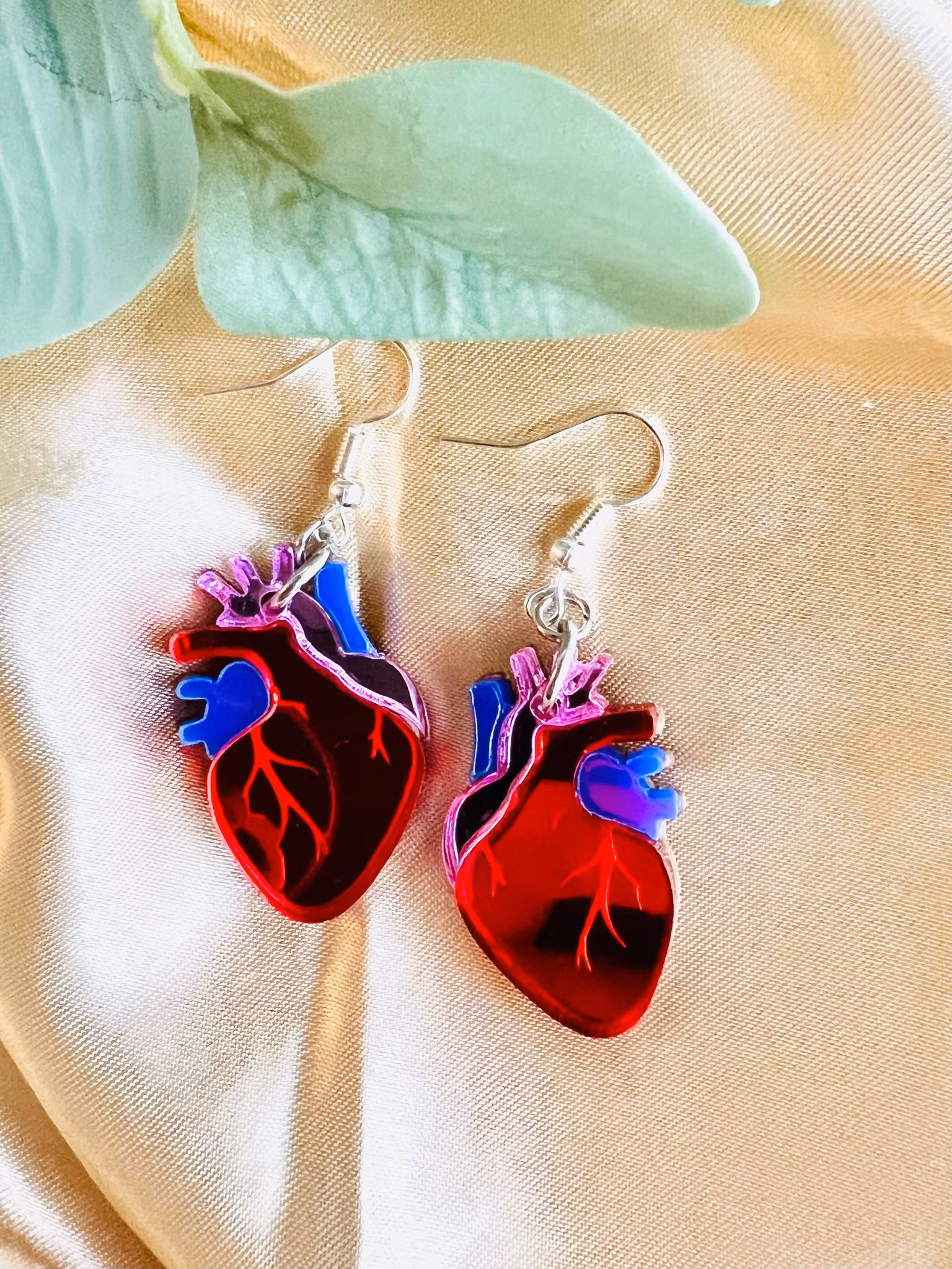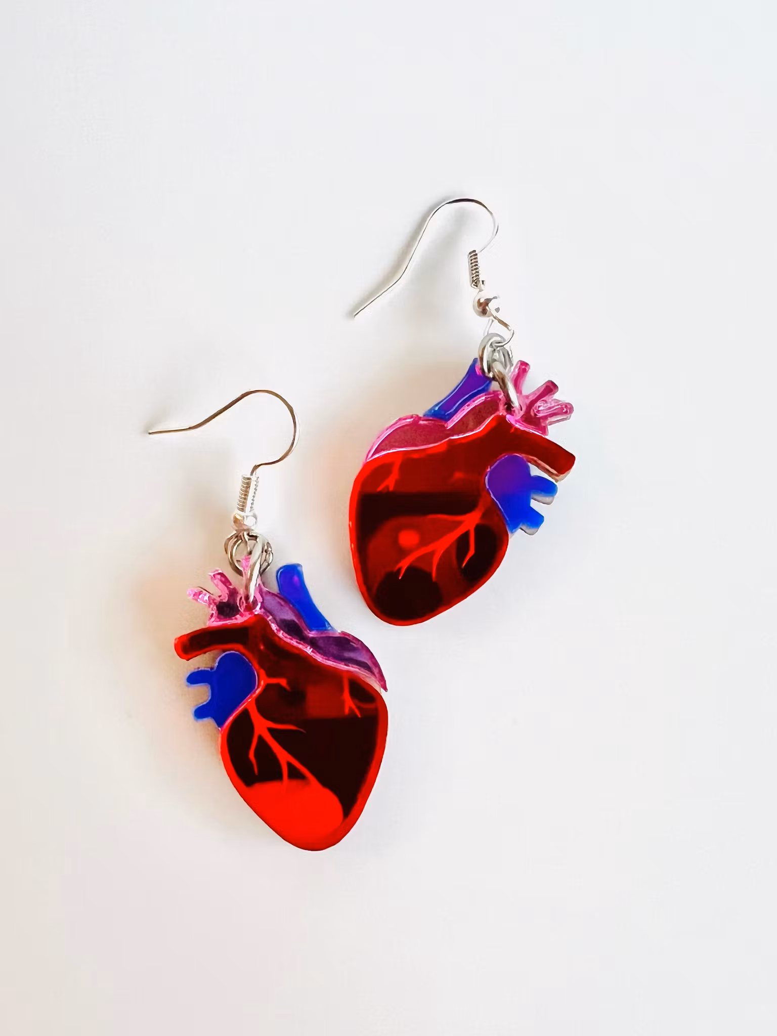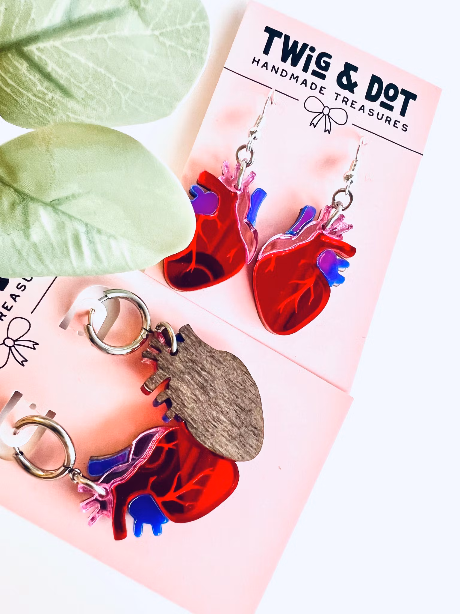 Unika och handgjorda örhängen i akryl med detaljer i spegelakryl, förstärkta på baksidan med vackert mörk trä. Dessa örhängen är lättviktiga och otroligt vackra men svårfotade då det är just spegelakryl - de är ännu vackrare i verkligheten! De monteras för hand av olika laserskurna delar för att bilda en helhet. Ett smycke för den som söker något speciellt och småskaligt! De mäter 3,5 cm och kommer på krokar, går att byta till clicker hoops via tillval.