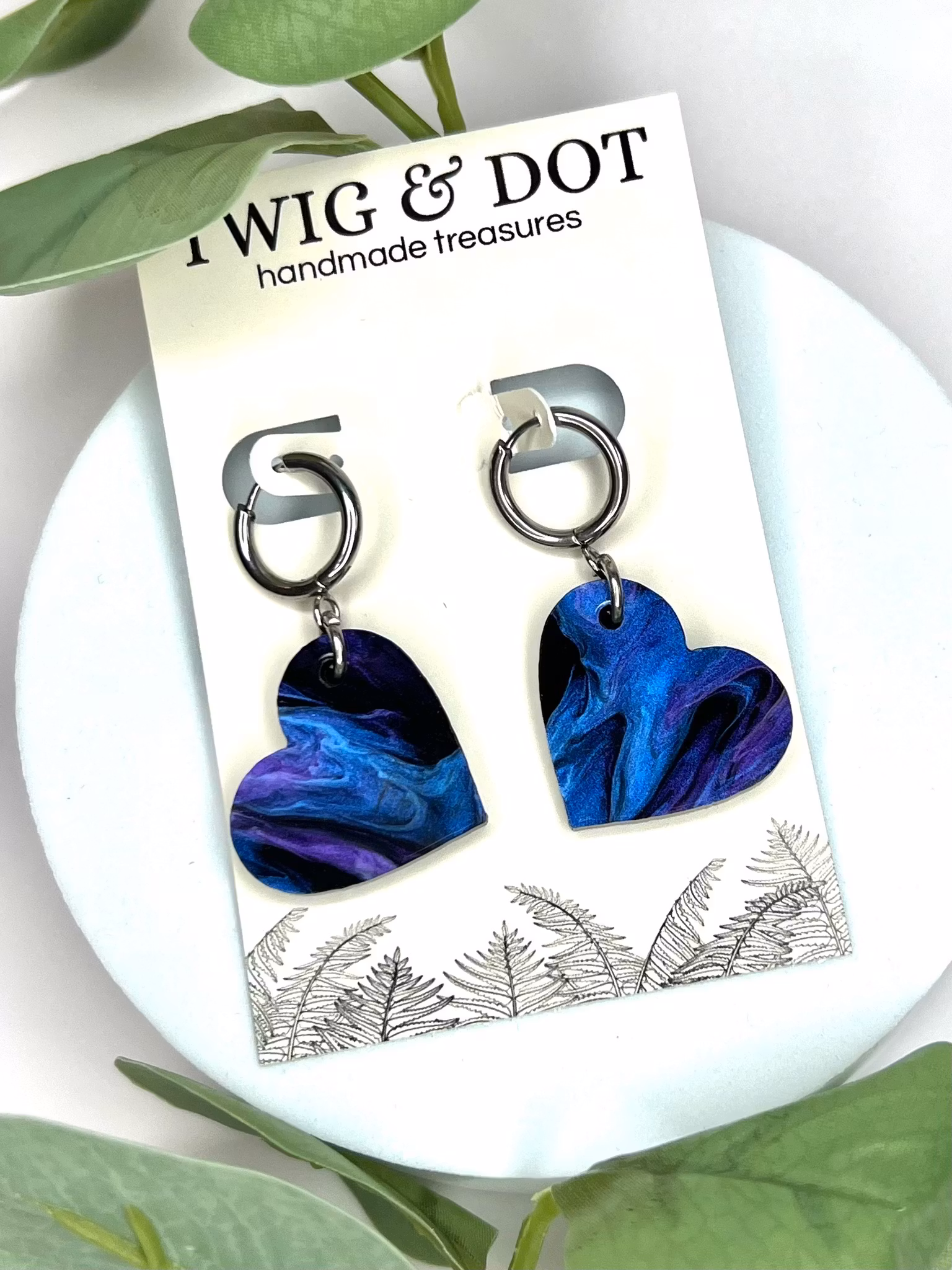 Unika och handgjorda örhängen i akryl med olika färgskiftningar! Dessa örhängen är lättviktiga och alla får olika utseende pga de vackra skiftningarna i akrylen. De monteras för hand av laserskurna delar. Ett smycke för den som söker något speciellt och småskaligt! De mäter 2,3 cm.