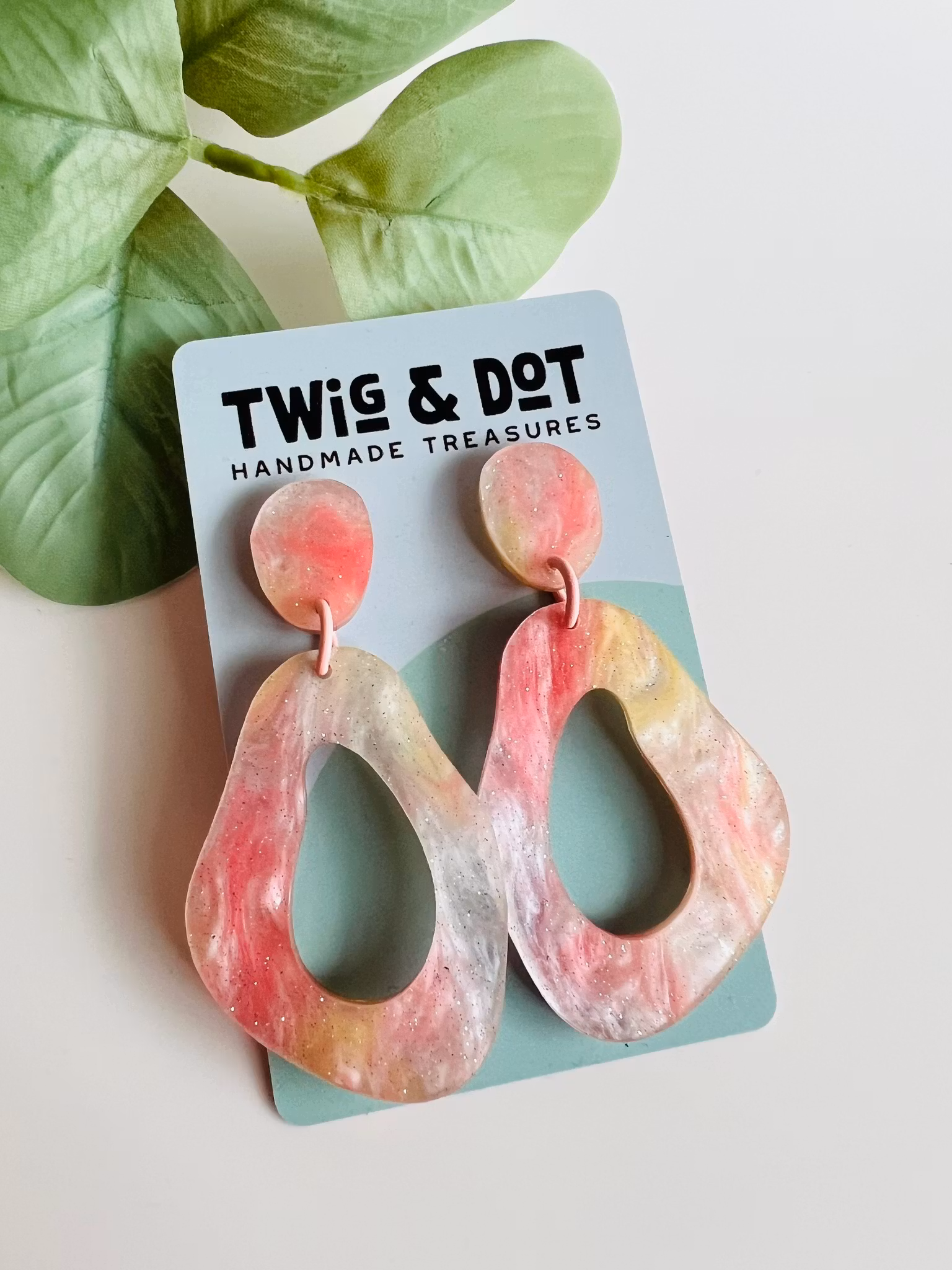 Unika och handgjorda örhängen i akryl. Dessa örhängen är lättviktiga och de monteras för hand av olika laserskurna delar för att bilda en helhet. Ett smycke för den som söker något speciellt och småskaligt! De mäter 6,5 cm.