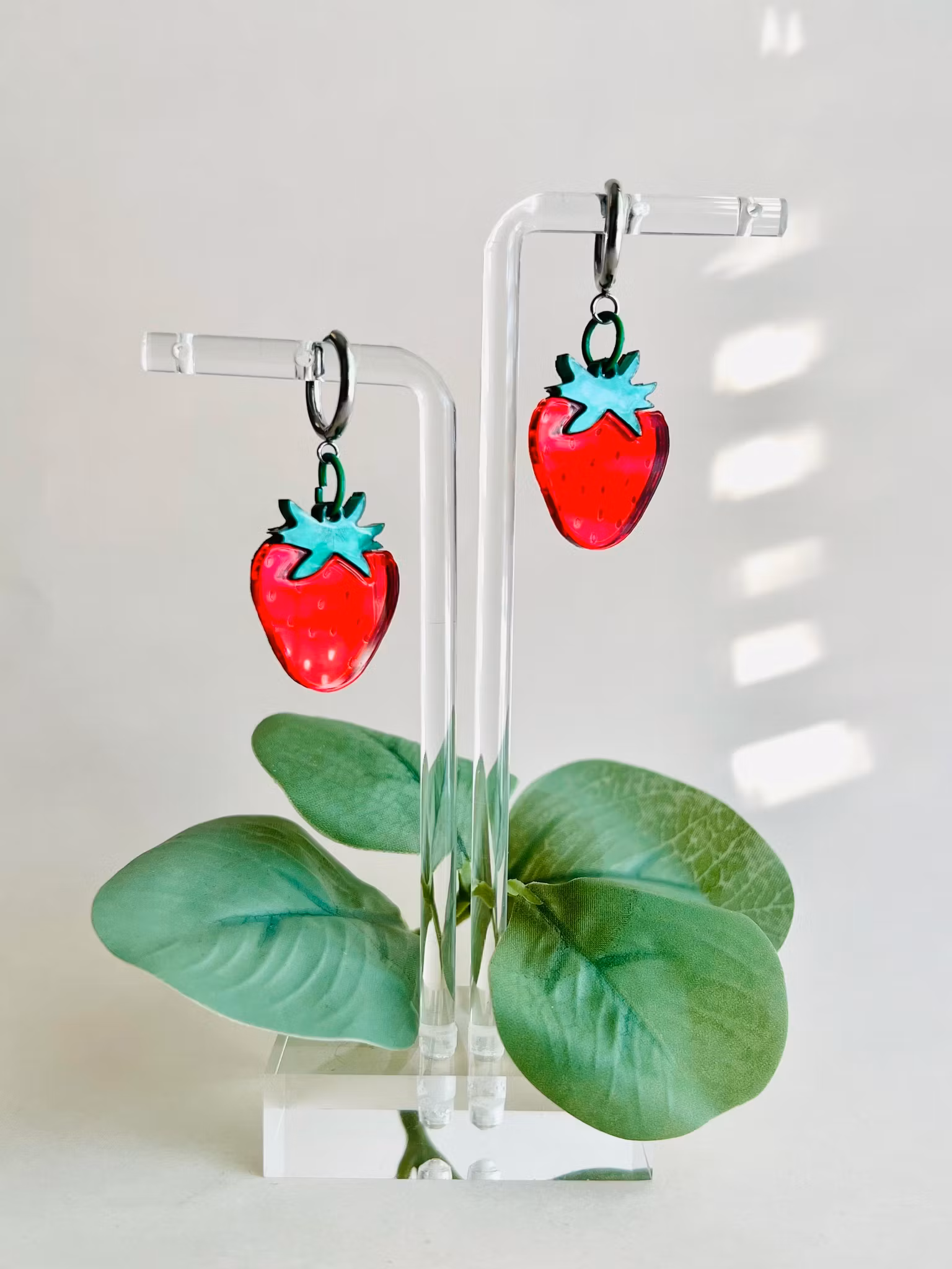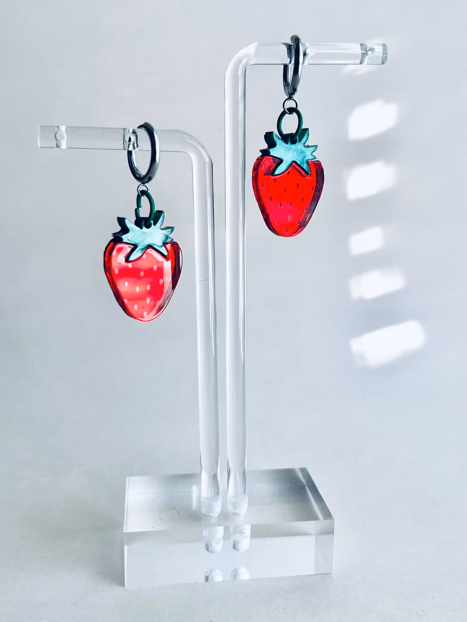 Unika och handgjorda örhängen i spegelakryl, förstärkta på baksidan med mörkt trä. Dessa örhängen är lättviktiga och otroligt vackra men svårfotade då det är just spegelakryl - de är ännu vackrare i verkligheten! De monteras för hand av olika laserskurna delar för att bilda en helhet. Ett smycke för den som söker något speciellt och småskaligt! De mäter ca 2,8 cm och kommer på clicker hoops.